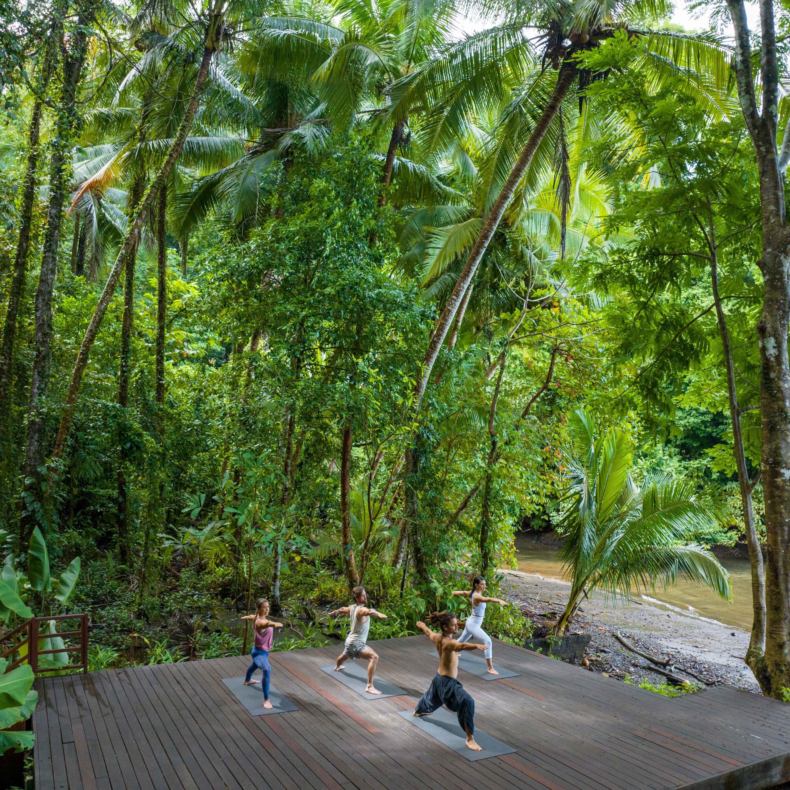 Explore Cativo Bay with complimentary kayaks, stand-up paddle boards, and snorkeling gear. Join our "Introduction to the Tropical Rainforest" guided tour, a 1.45-hour immersive experience with our knowledgeable in-house guides. Participate in daily mindful movement sessions and traverse self-guided hiking trails through our private rainforest reserve, including a visit to our stunning on-property waterfall.